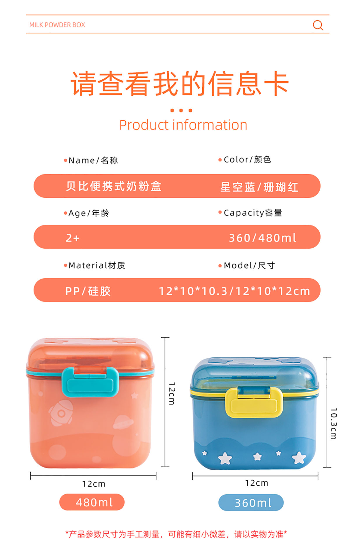 貝比便攜式奶粉盒(大號/小號)