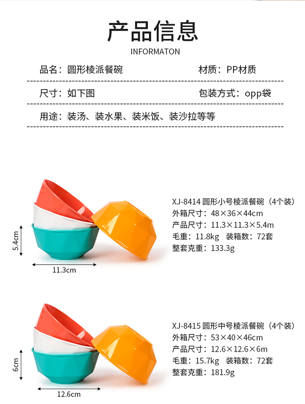圓形小號(hào)/中號(hào)/大號(hào)/特大號(hào)/套裝棱派餐碗