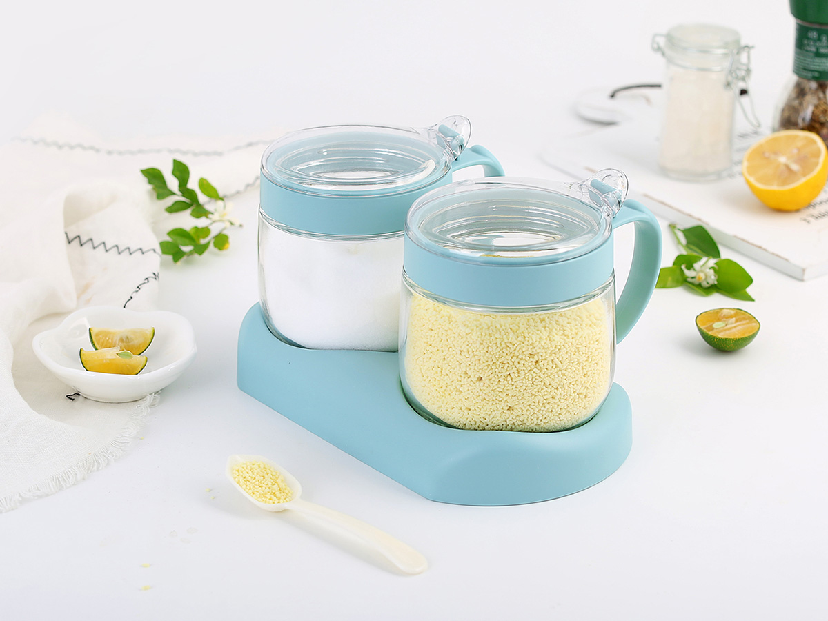 圓形玻璃調味罐(2格)