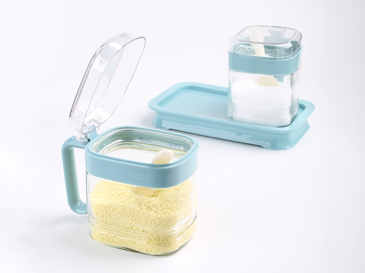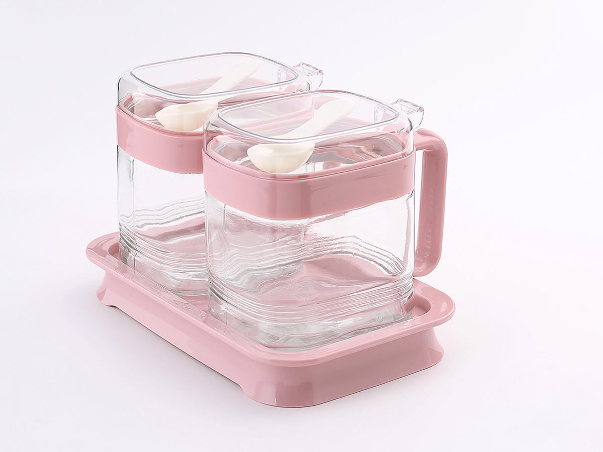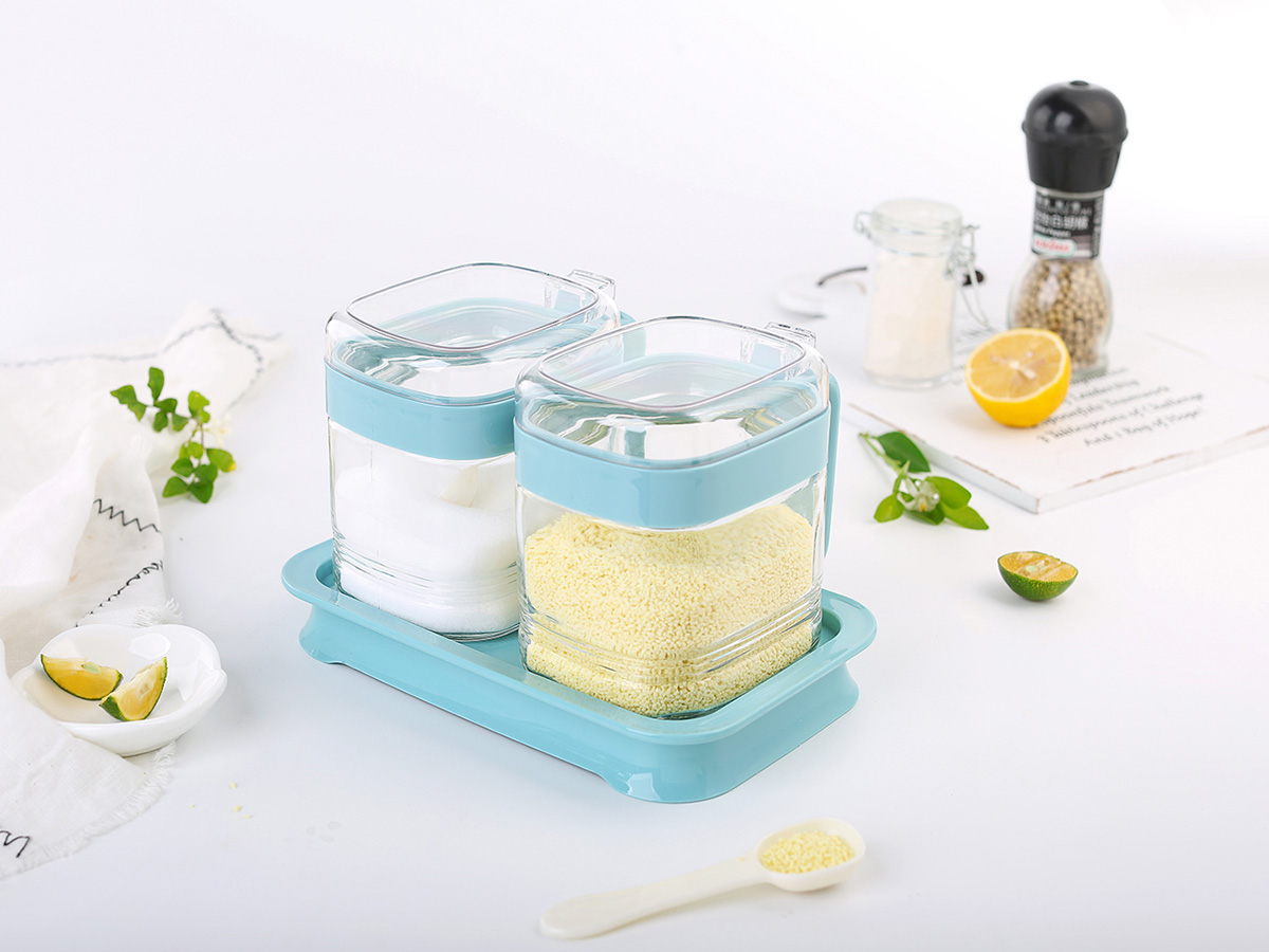 簡(jiǎn)約方形玻璃調(diào)味罐(2格)
