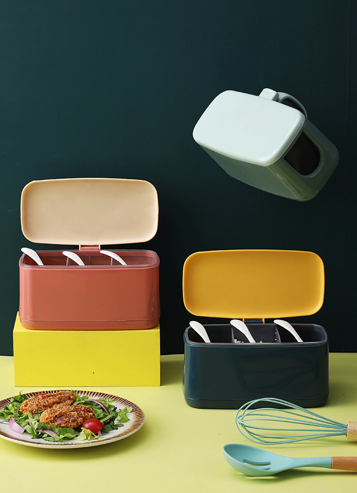 莫蘭迪雙層/手提式(單格/兩格/大兩格/大三格)調(diào)味盒