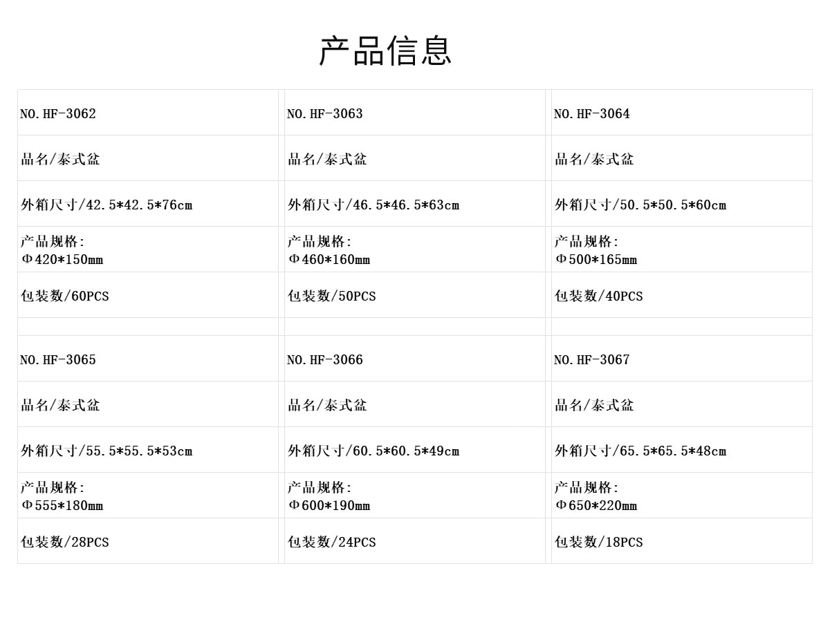 HF-3066:Φ600*190mm/HF-3067:Φ650*220mm