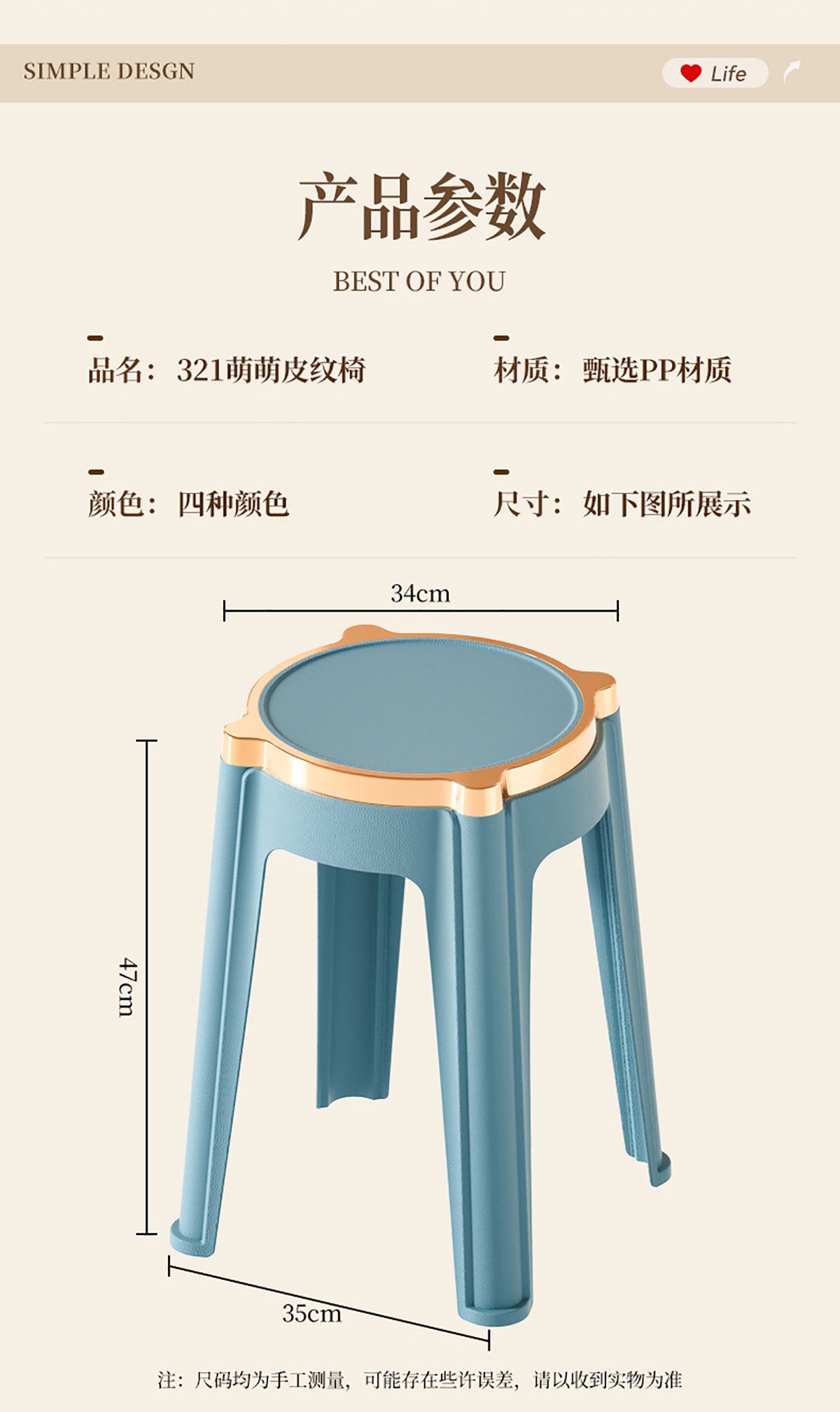 金邊皮紋凳(大號)