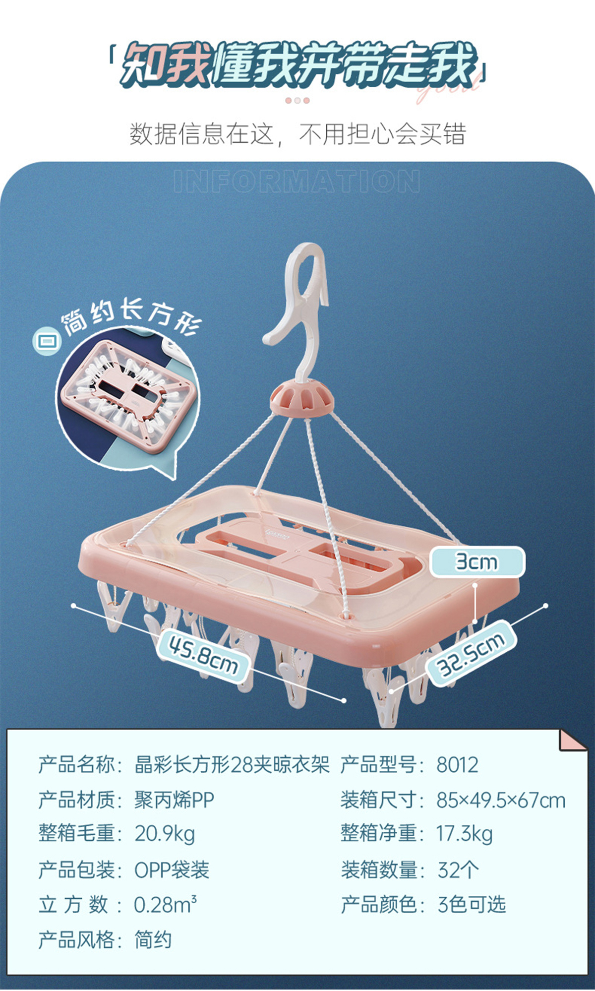 晶彩長方形28夾晾衣架 2023年新色