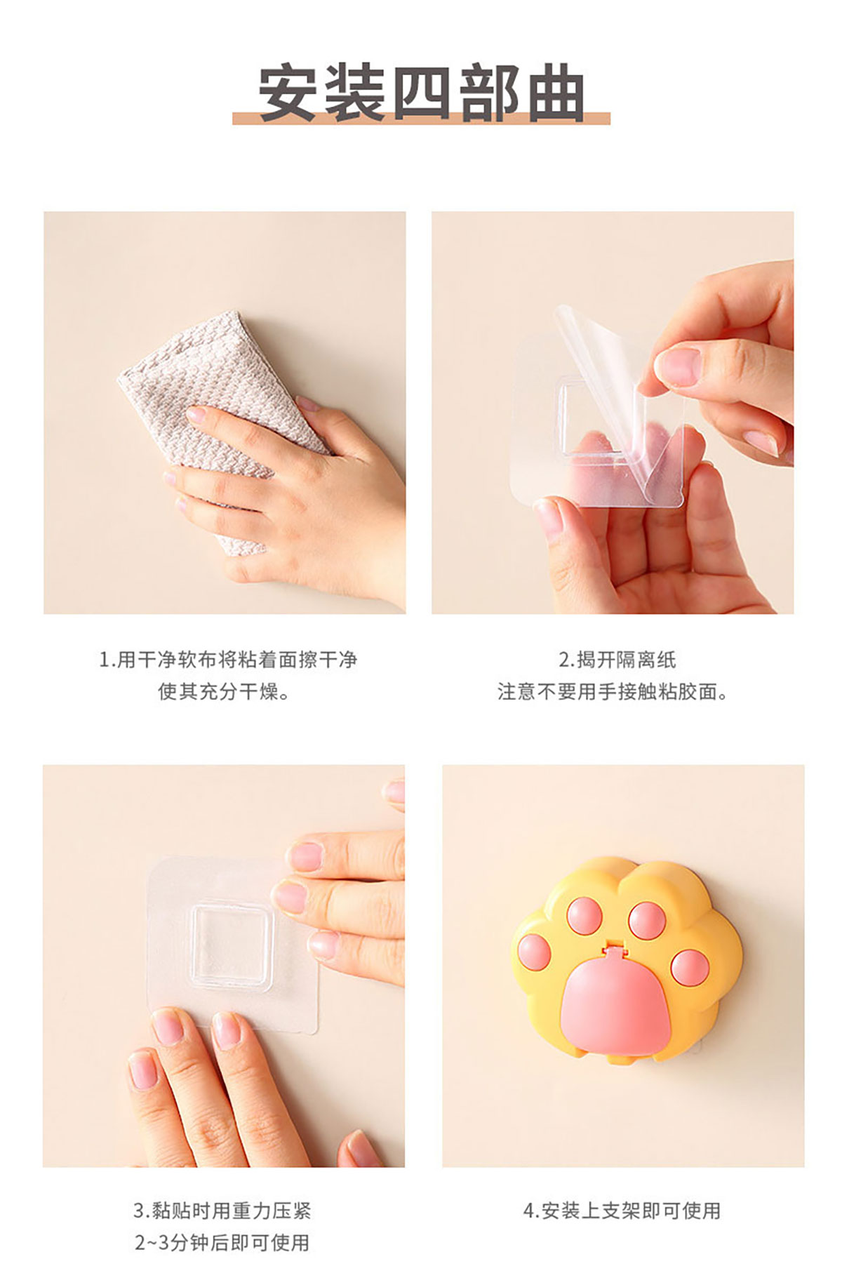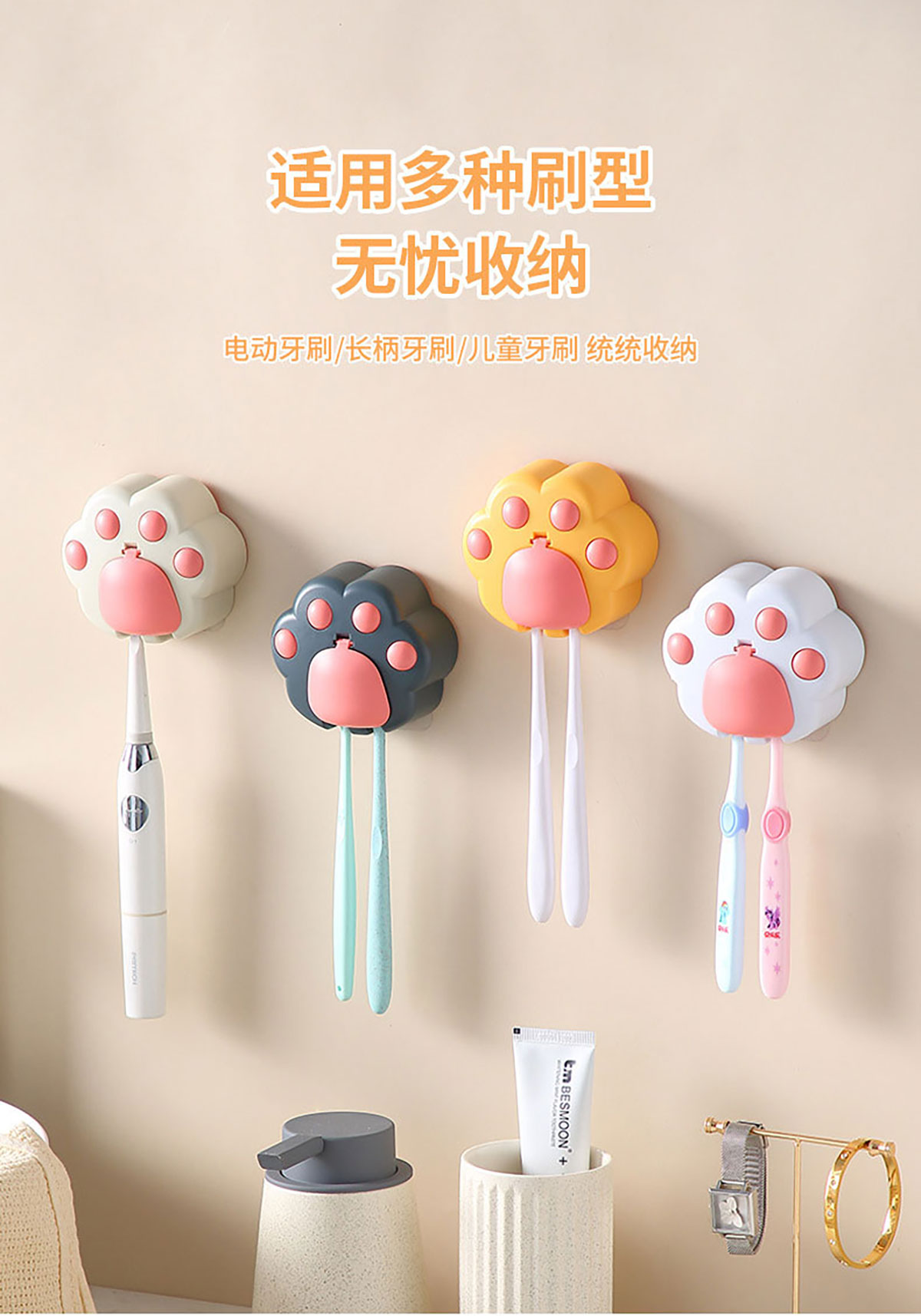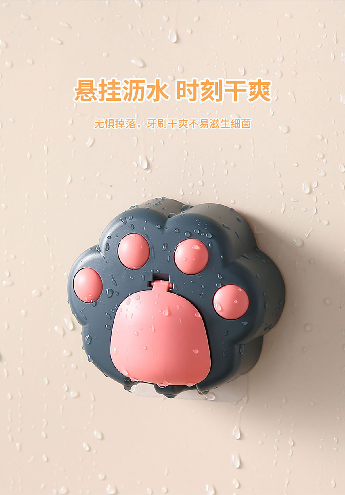 創(chuàng)意免打孔貓爪牙刷架(配無痕膠)