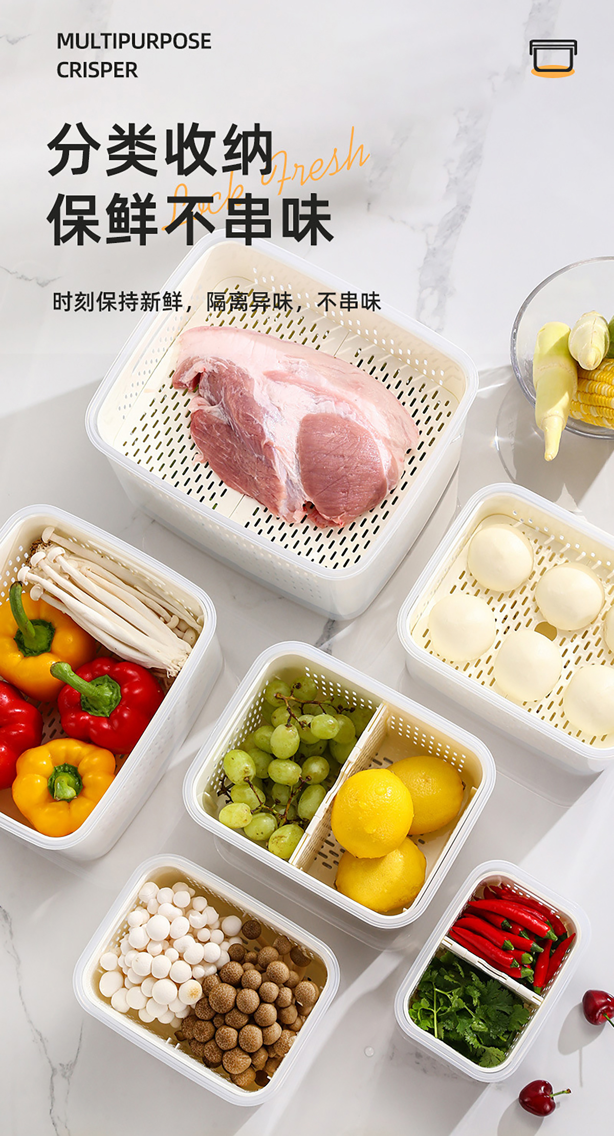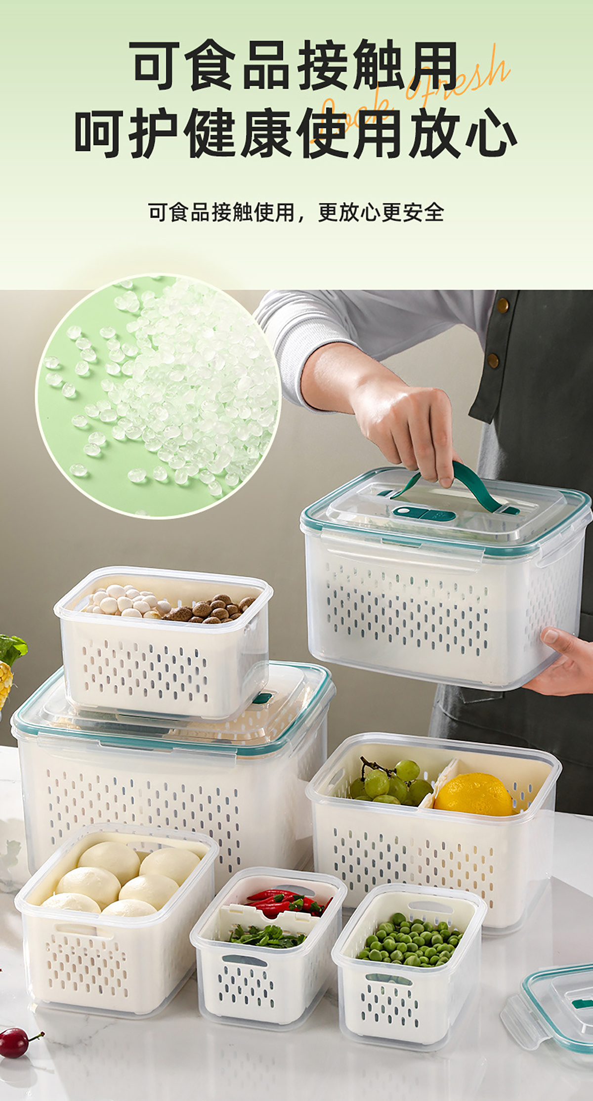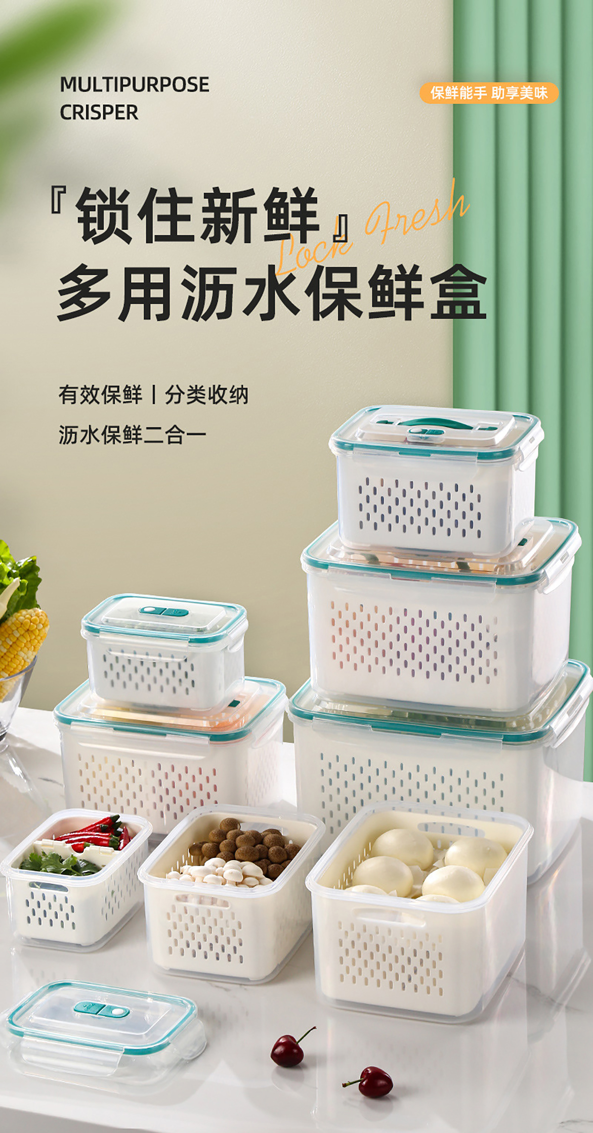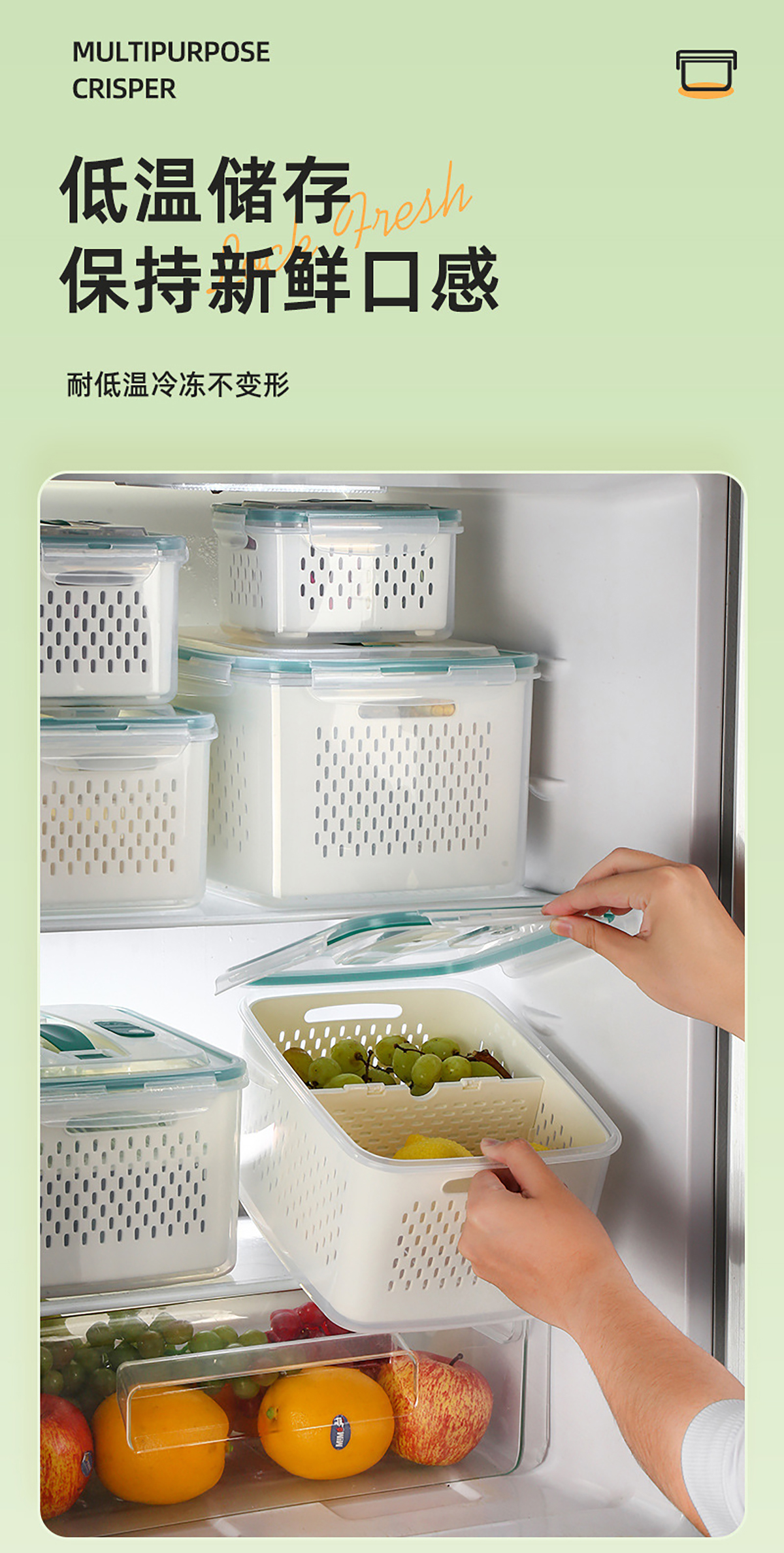三件套/四件套/五件套手提密封分格瀝水保鮮盒