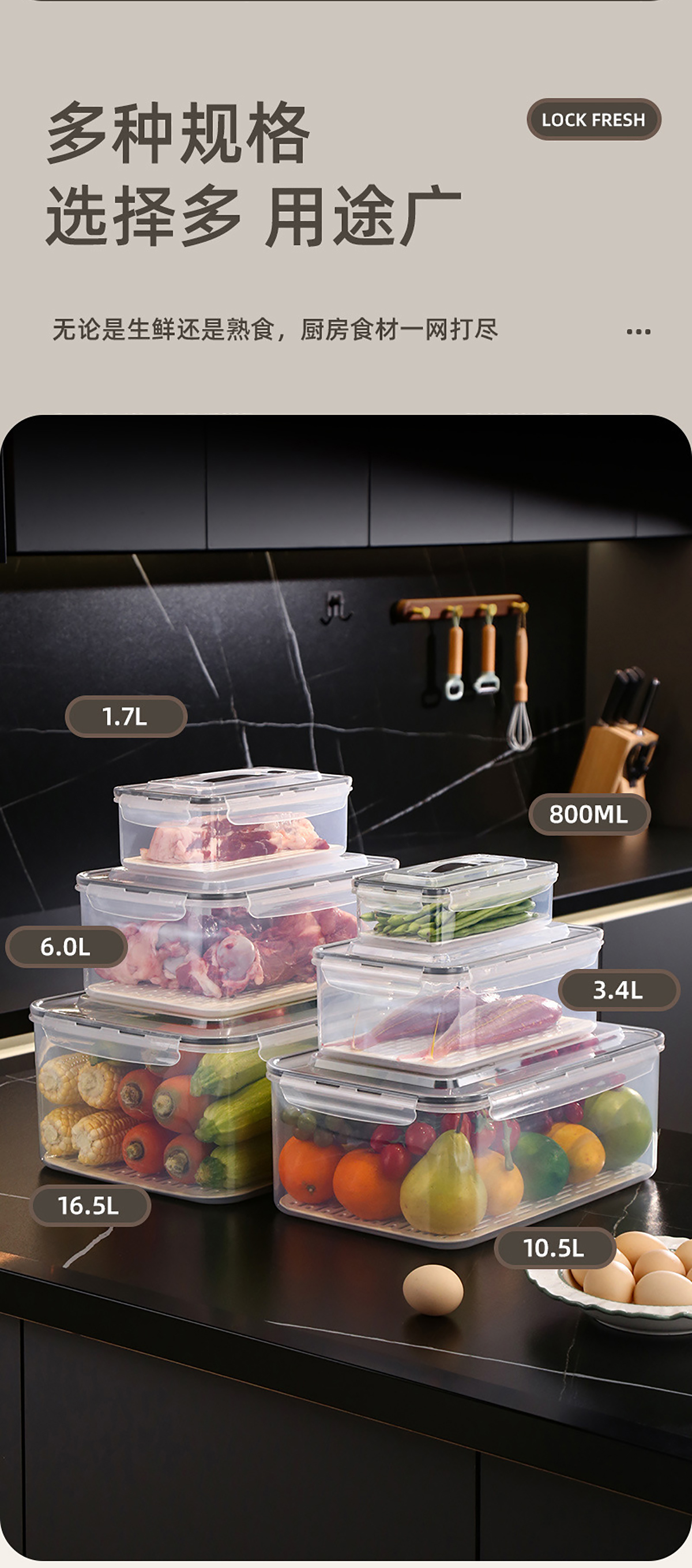 手提密封瀝水板保鮮盒(800nl/1.7L/3.4L/6.0L/10.5L/16.5L)