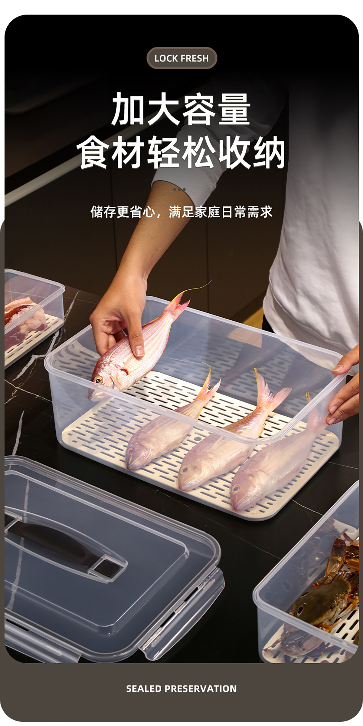 三件套/四件套/五件套/六件套手提密封瀝水板保鮮盒