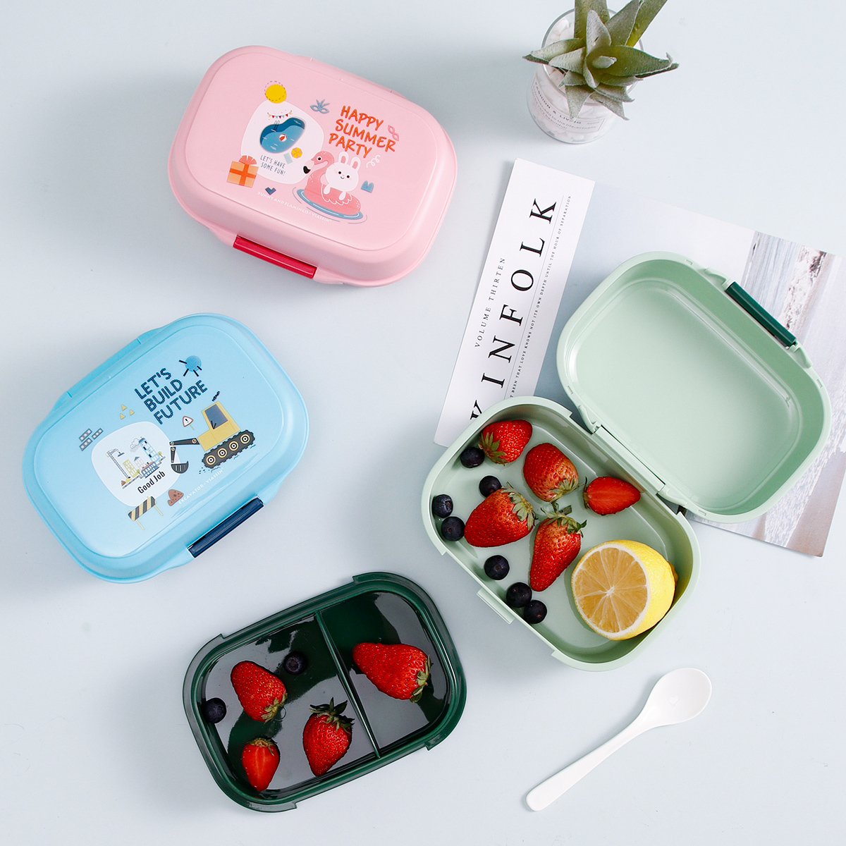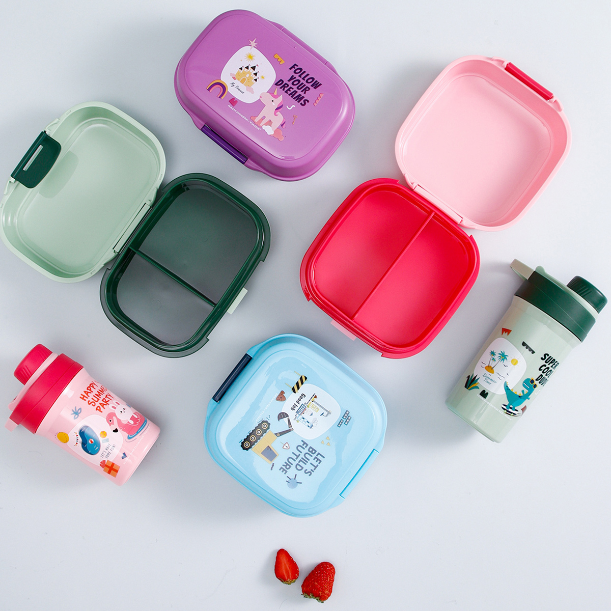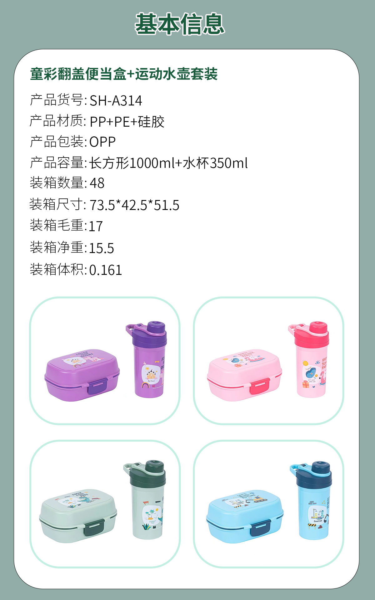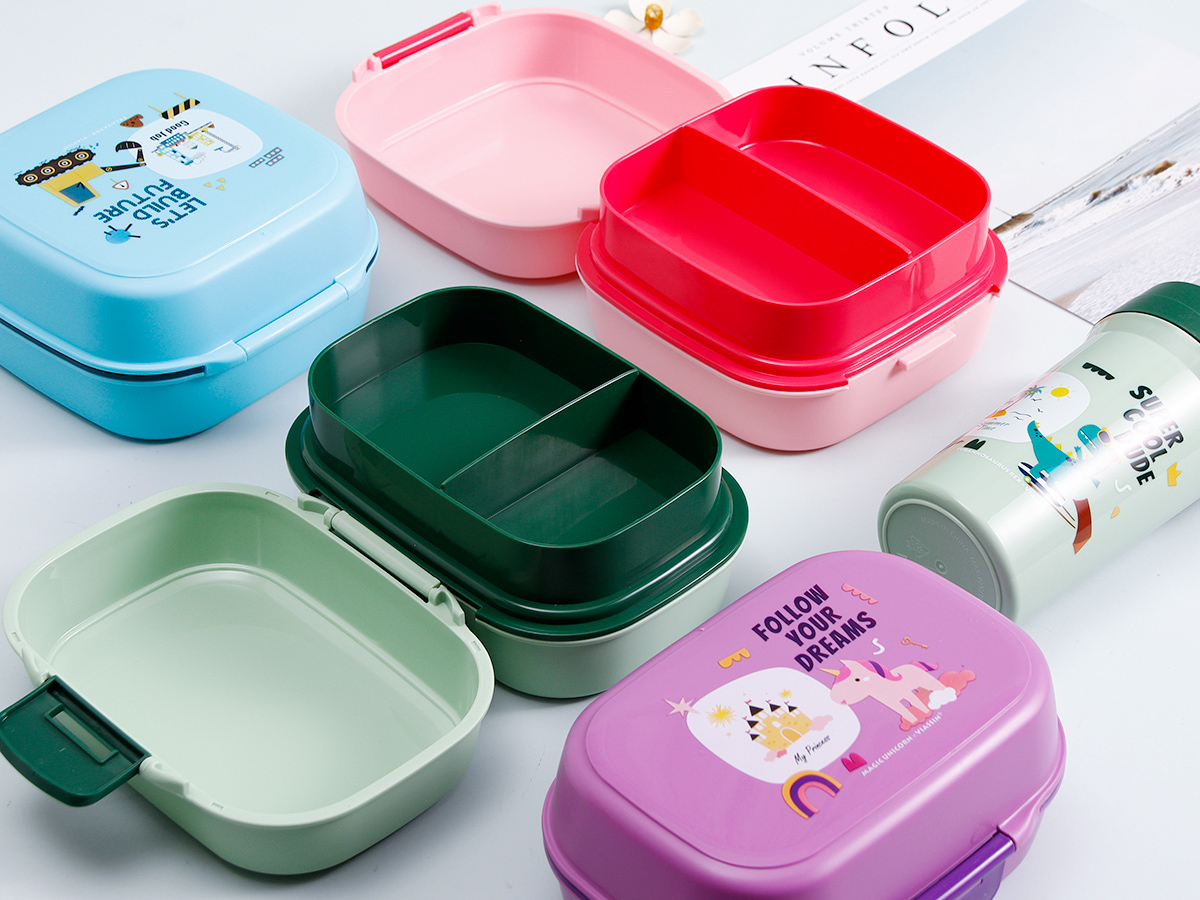 童彩翻蓋便當(dāng)盒+運(yùn)動水壺套裝(長方形/正方形1000ml+水杯350ml)