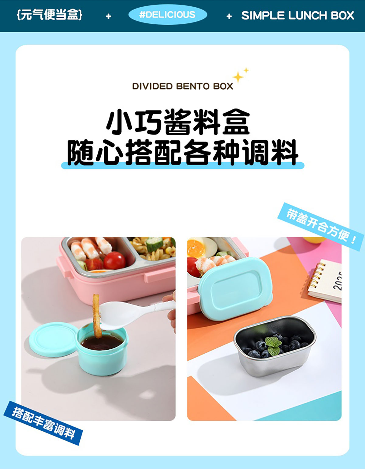 700ml童趣密封不銹鋼餐盒(單格+PP碗150ml/2格+沙拉碗80ml/2格+不銹鋼碗100ml)