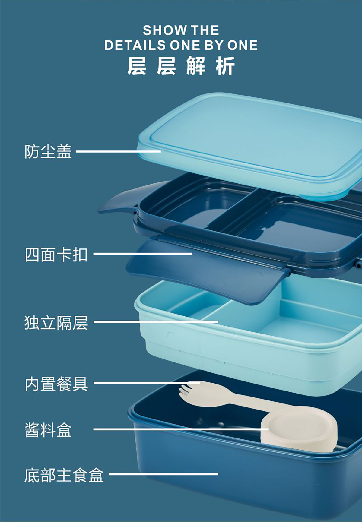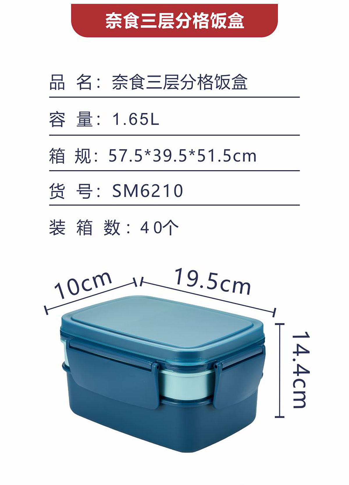 奈食三層分格飯盒1.65L