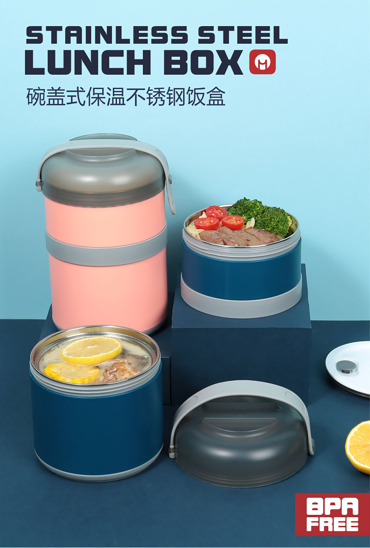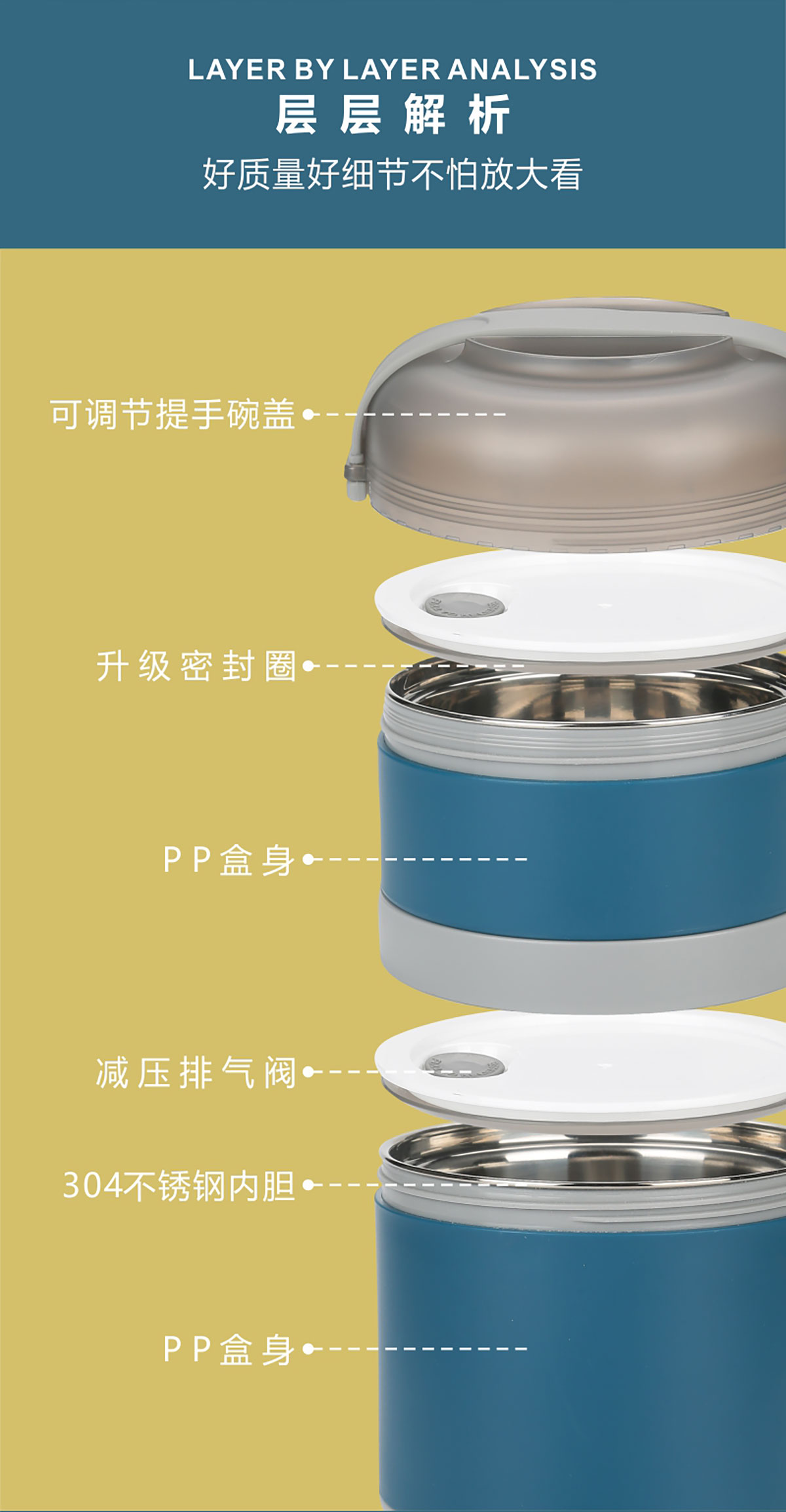 碗蓋式保溫不銹鋼飯盒雙層1250ml