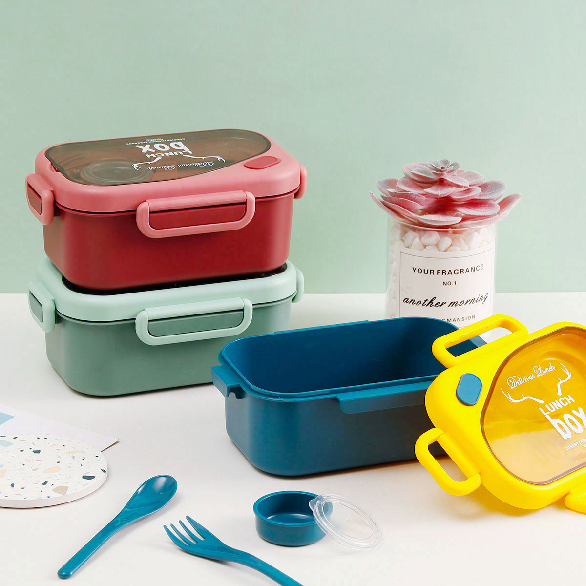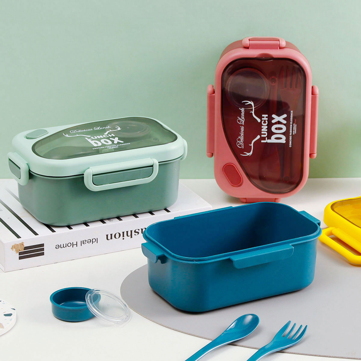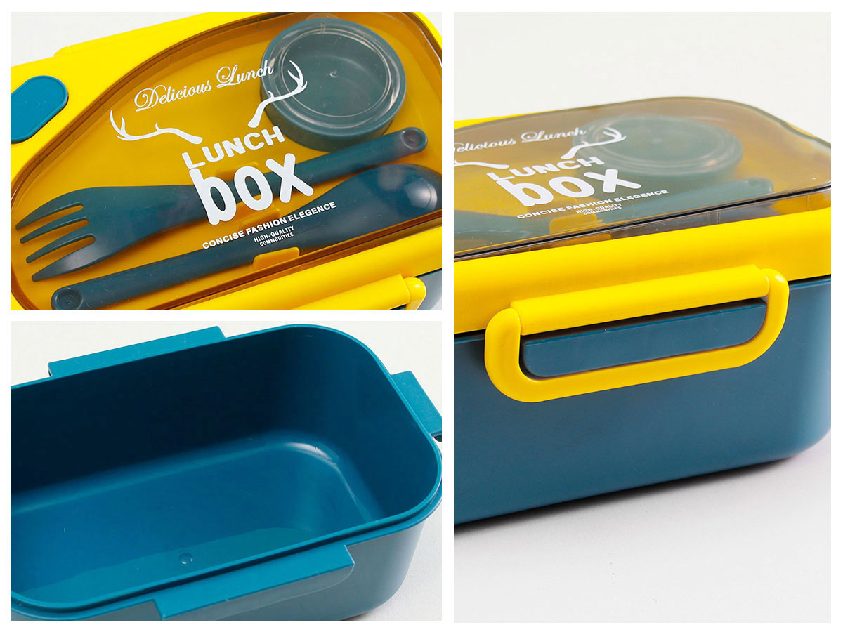 品悅長方單層密封飯盒(1000ml)(含醬料盒)+圓形/八角隨行杯(500ml)