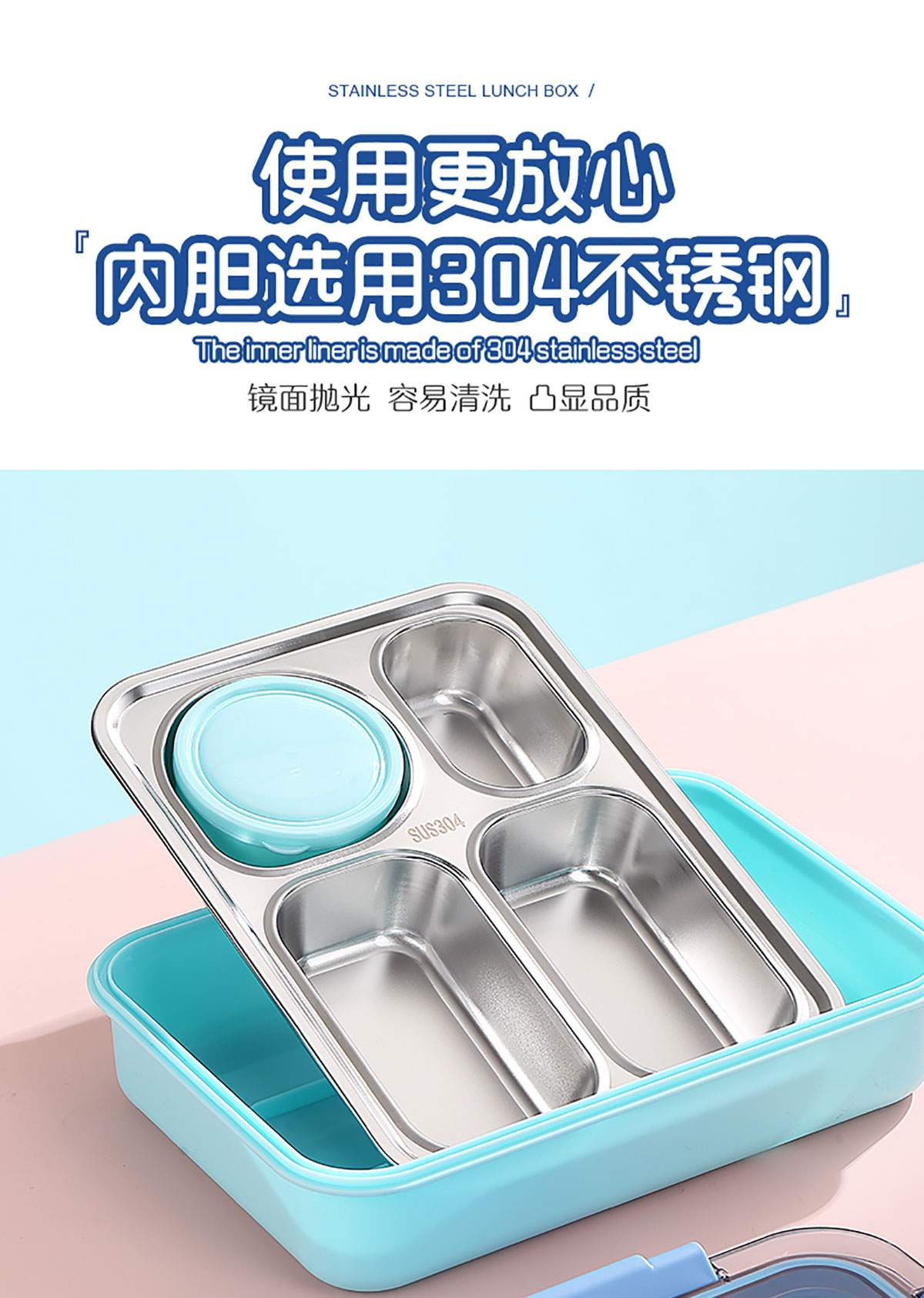 900ml獨立密封不銹鋼餐盒(4格+PP碗150ml+不銹鋼勺筷)