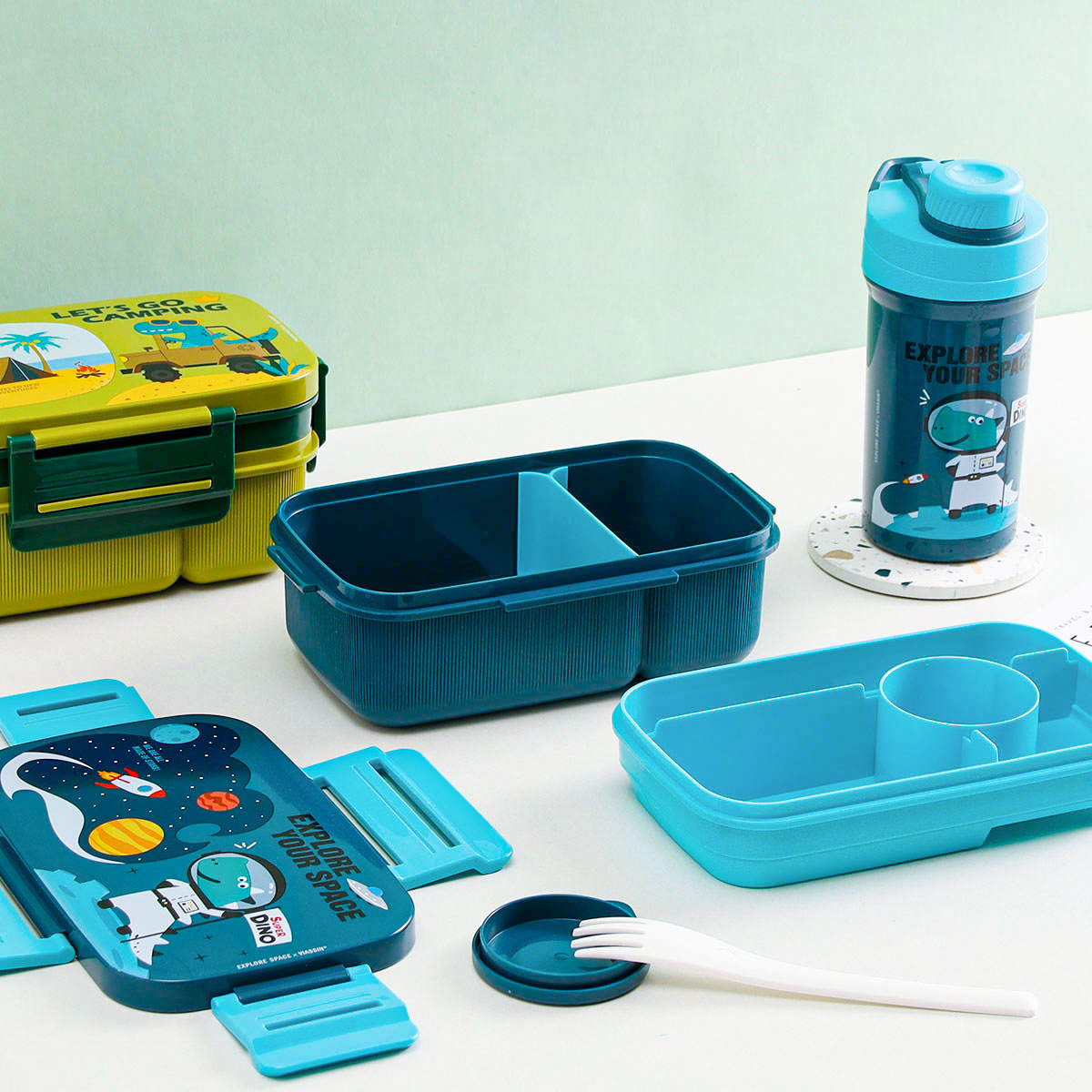 Size: SH-A355B(套裝):飯盒:218*140*105mm/水壺:Φ82(105)*182mm SH-A356B(單個):218*140*105mm