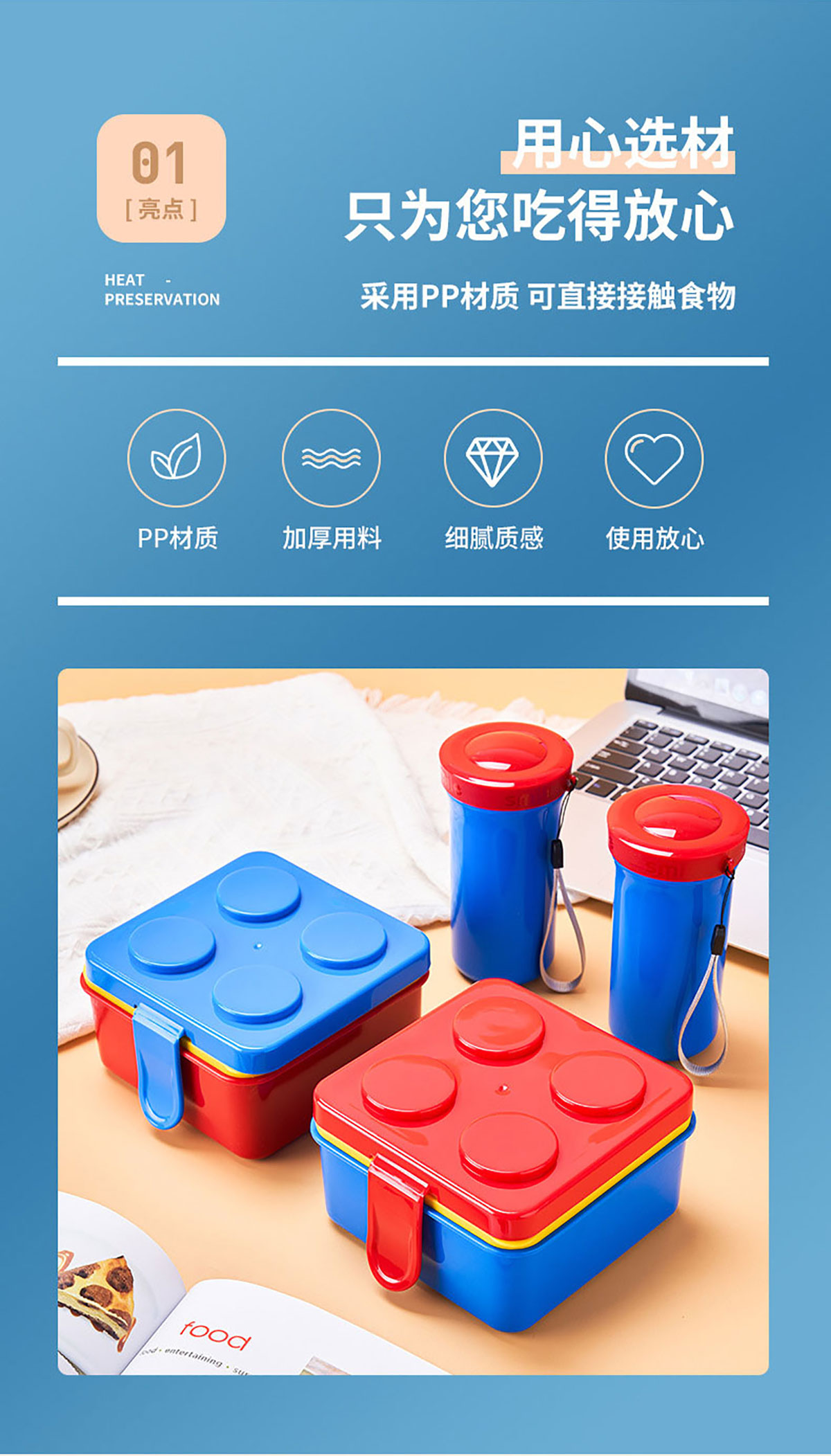 Size: 飯盒150*150*108mm/850ml 水杯70*70*140mm/400ml
