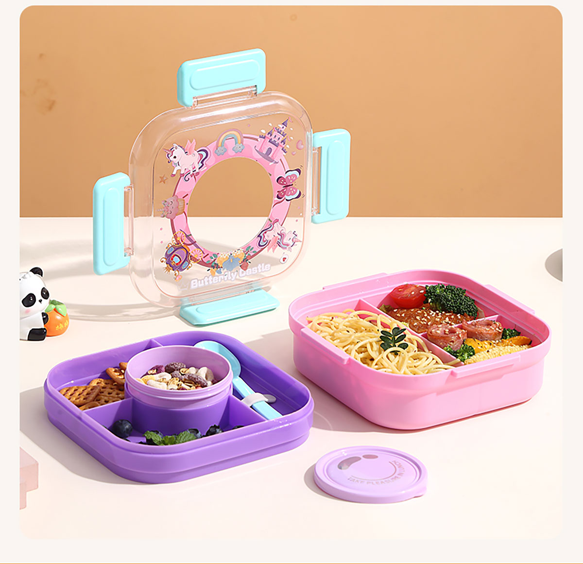 相機(jī)不串味餐盒(方形塑料三格1100ml+碗150ml+PP勺)
