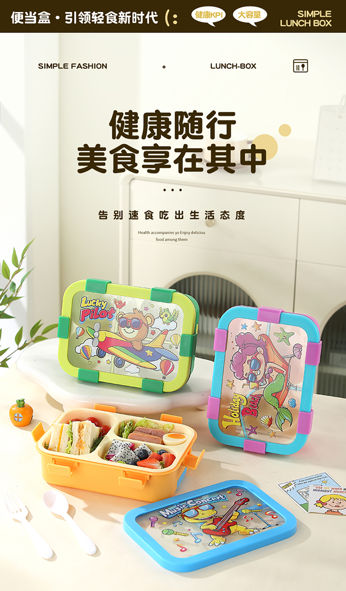 星樂(lè)便當(dāng)盒PP/卡通款 下單可選(三格700ml)/(三格碗型650ml)