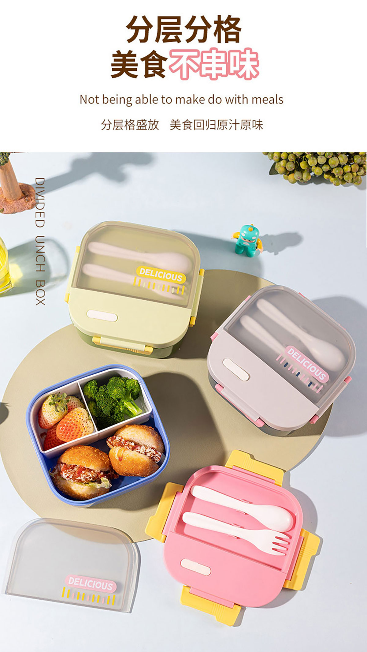 飯盒1250ml(帶餐具+獨(dú)立分盒)