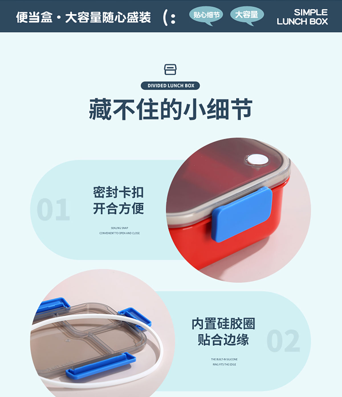 簡約透明分格飯盒1450ml