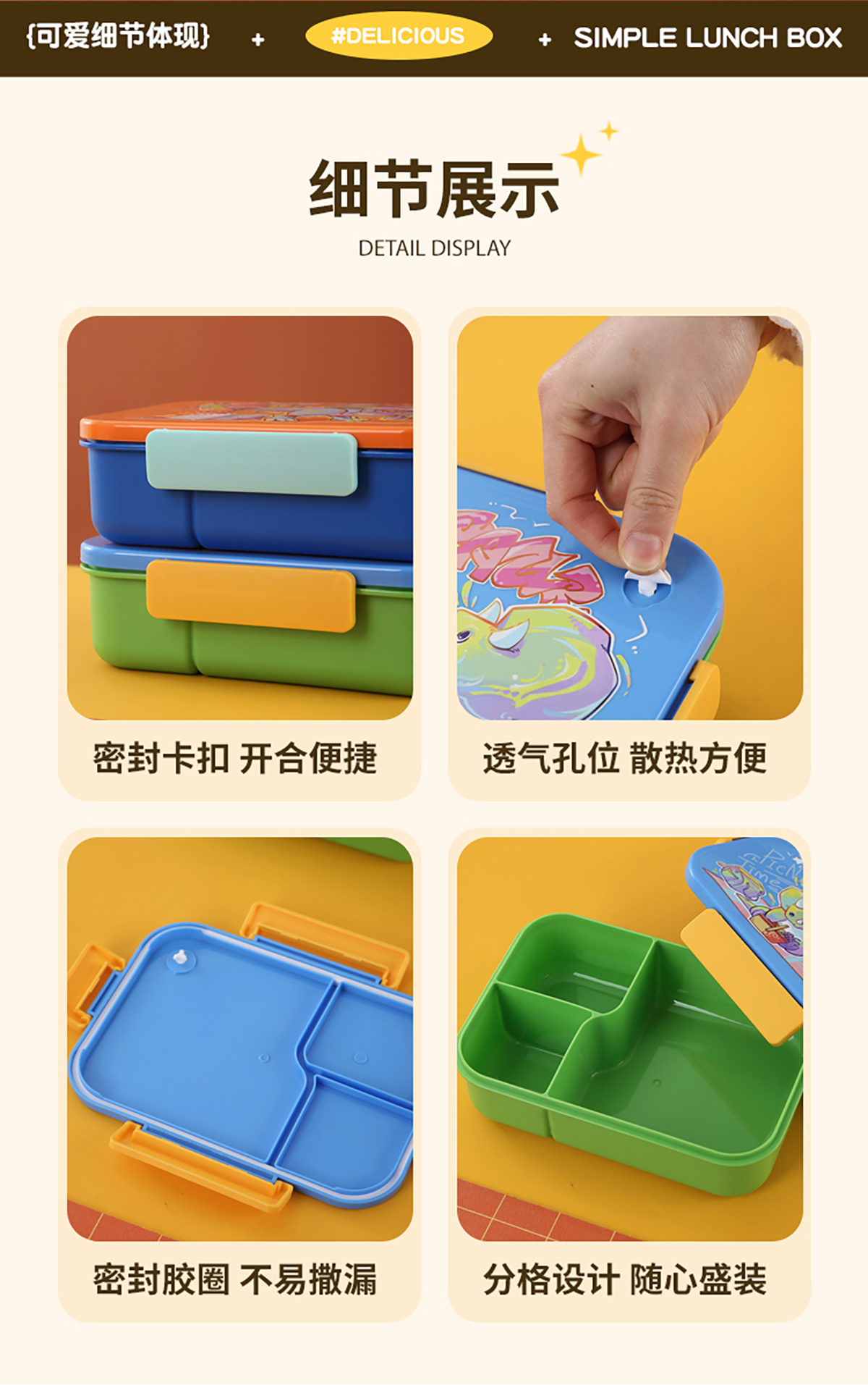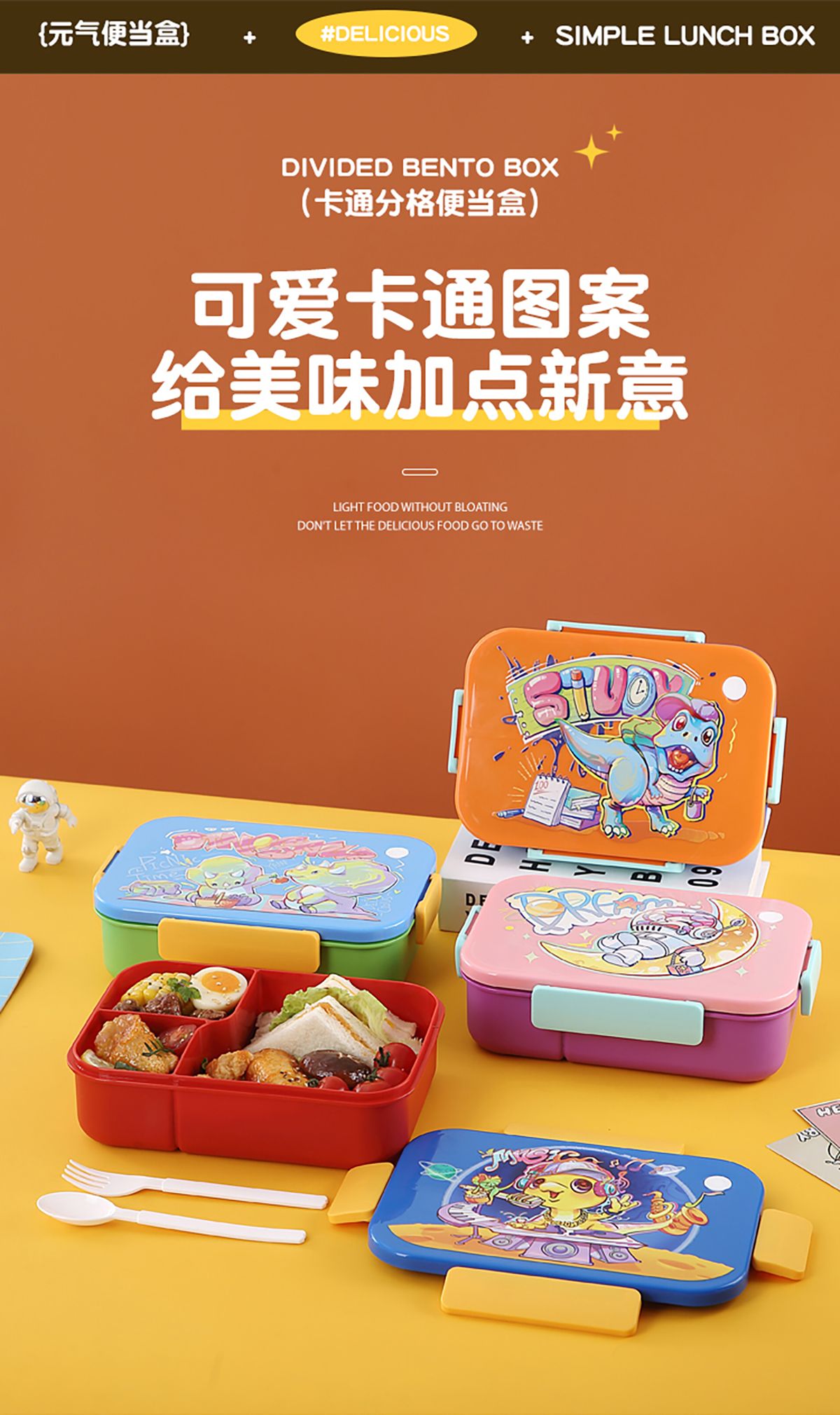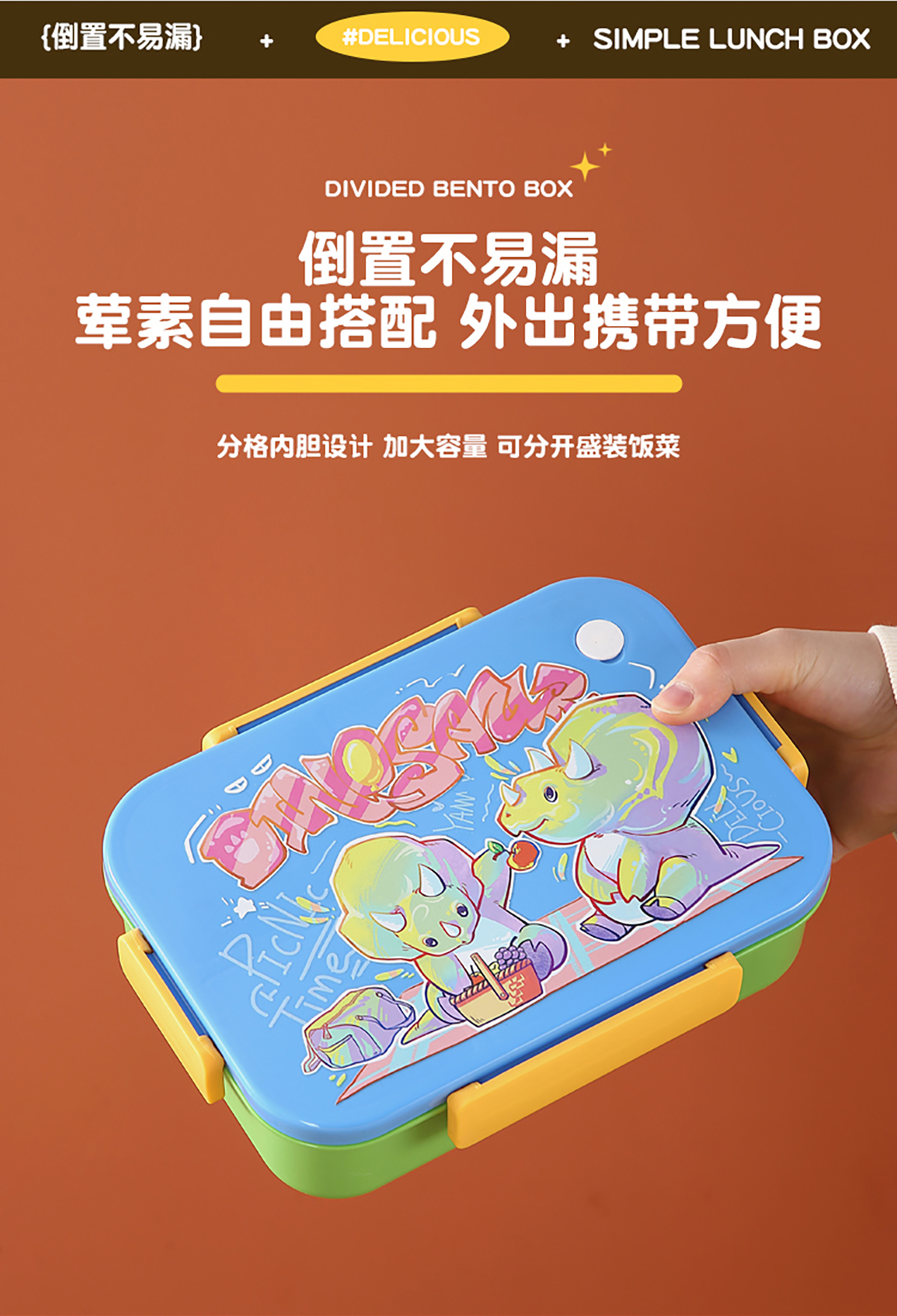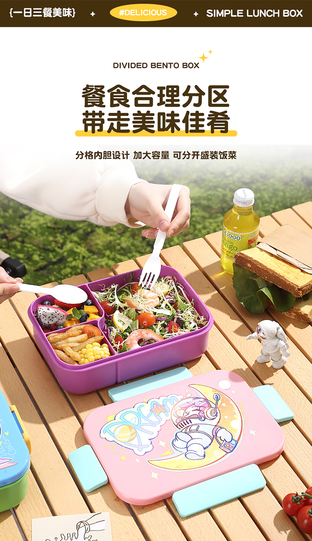 卡通實色蓋分格飯盒1450ml