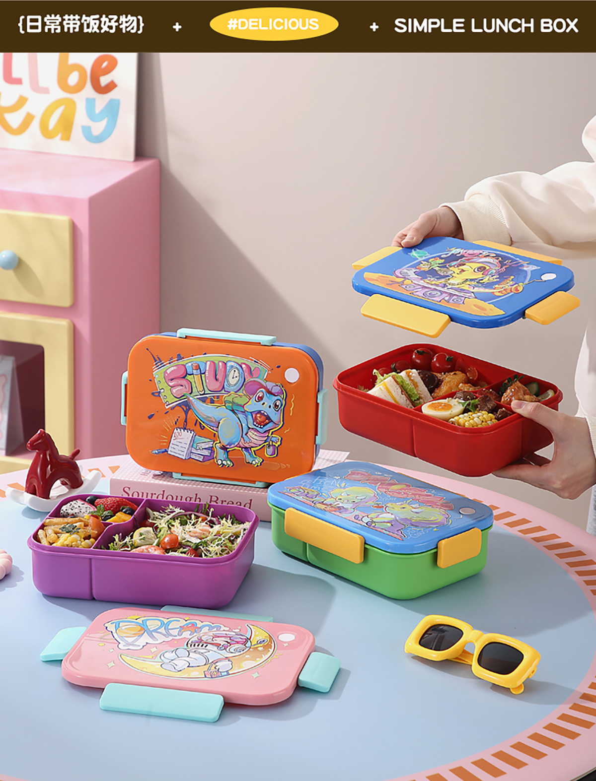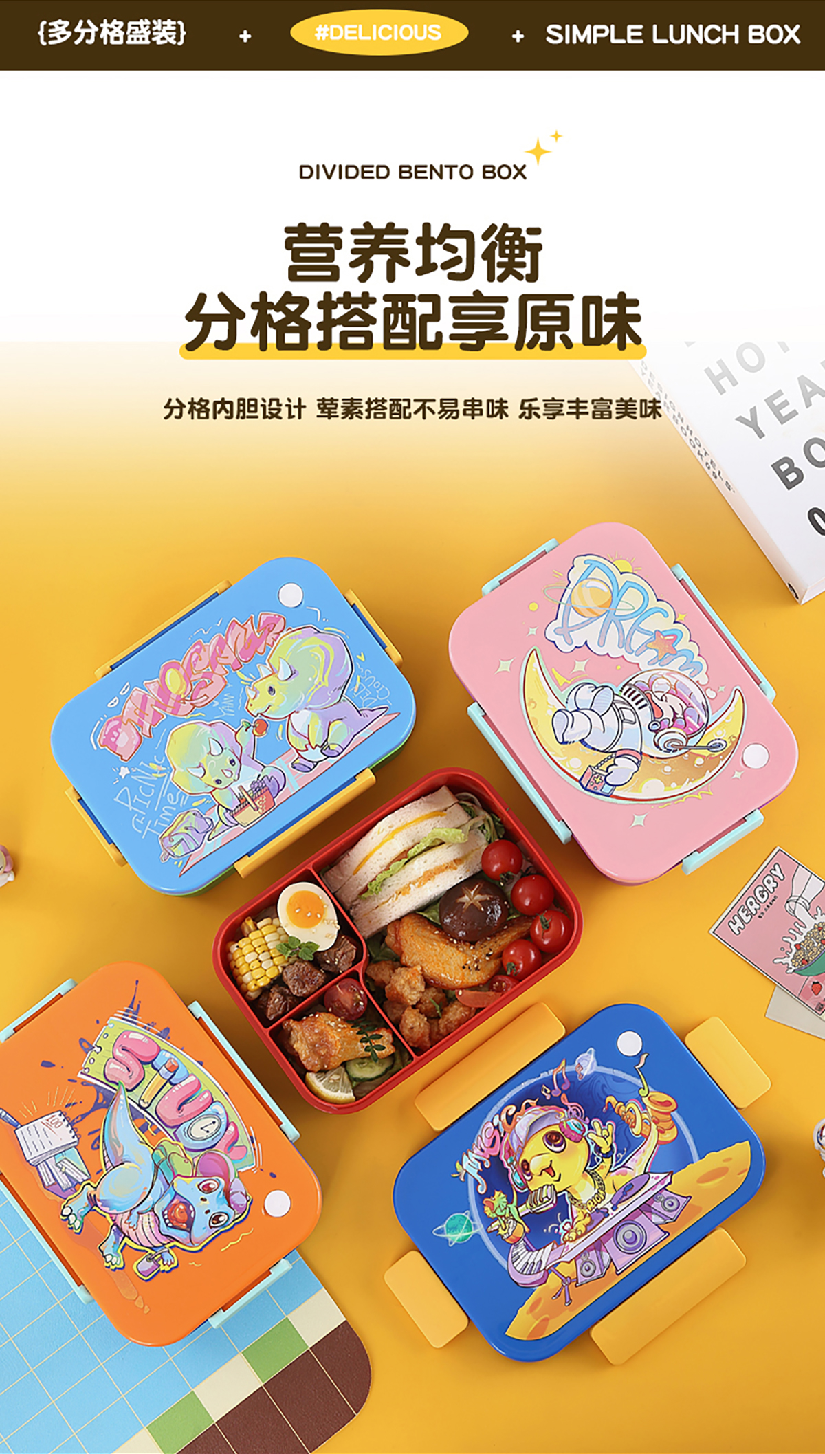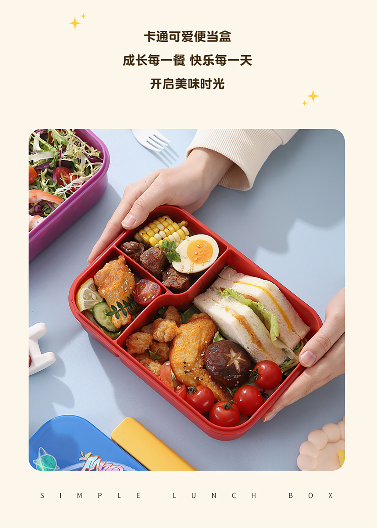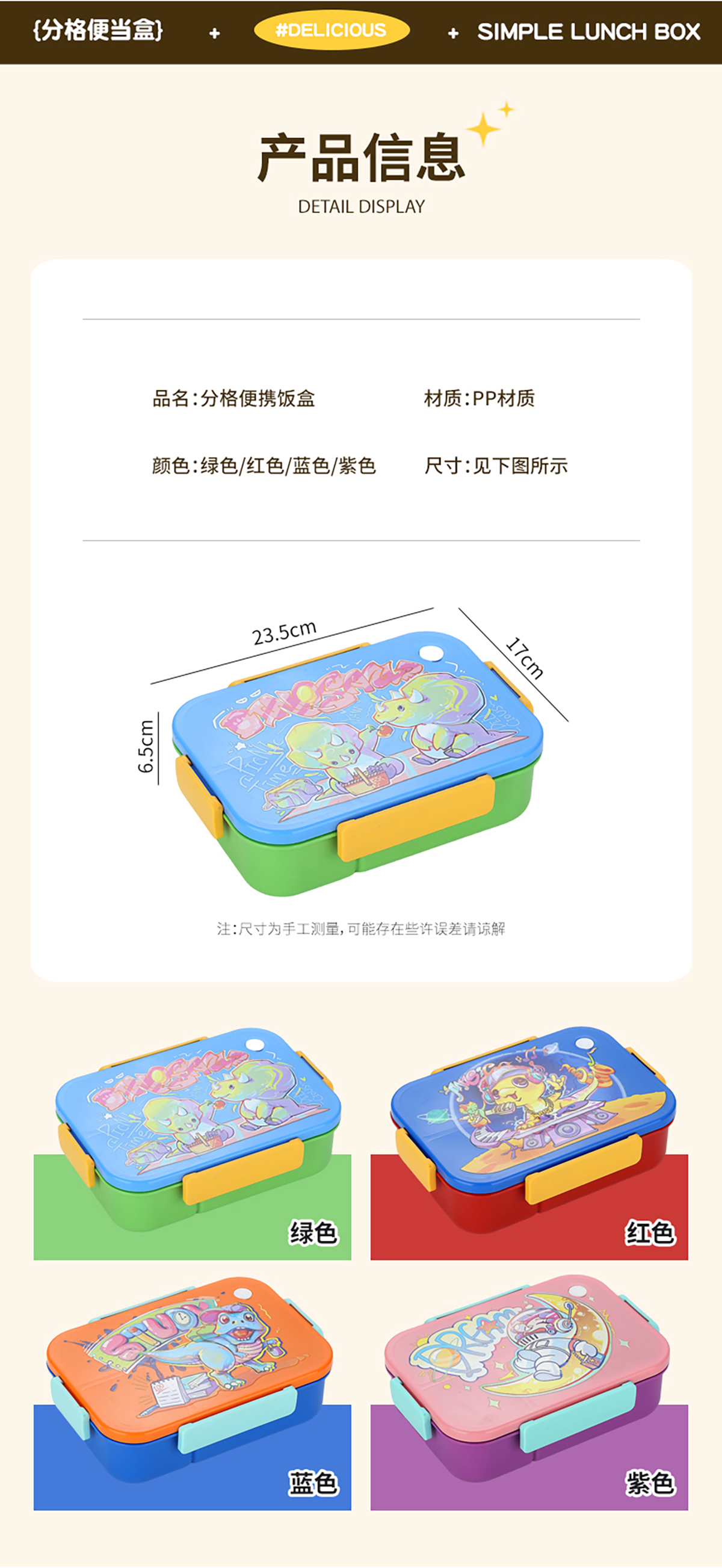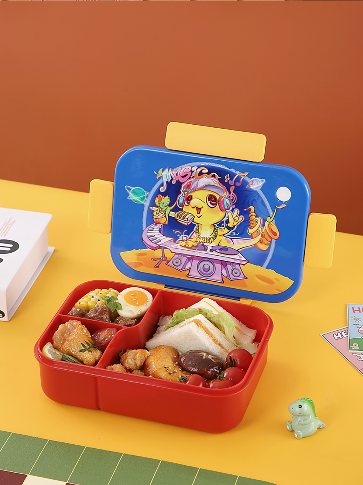 卡通實色蓋分格飯盒1450ml