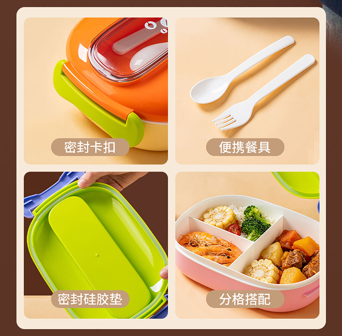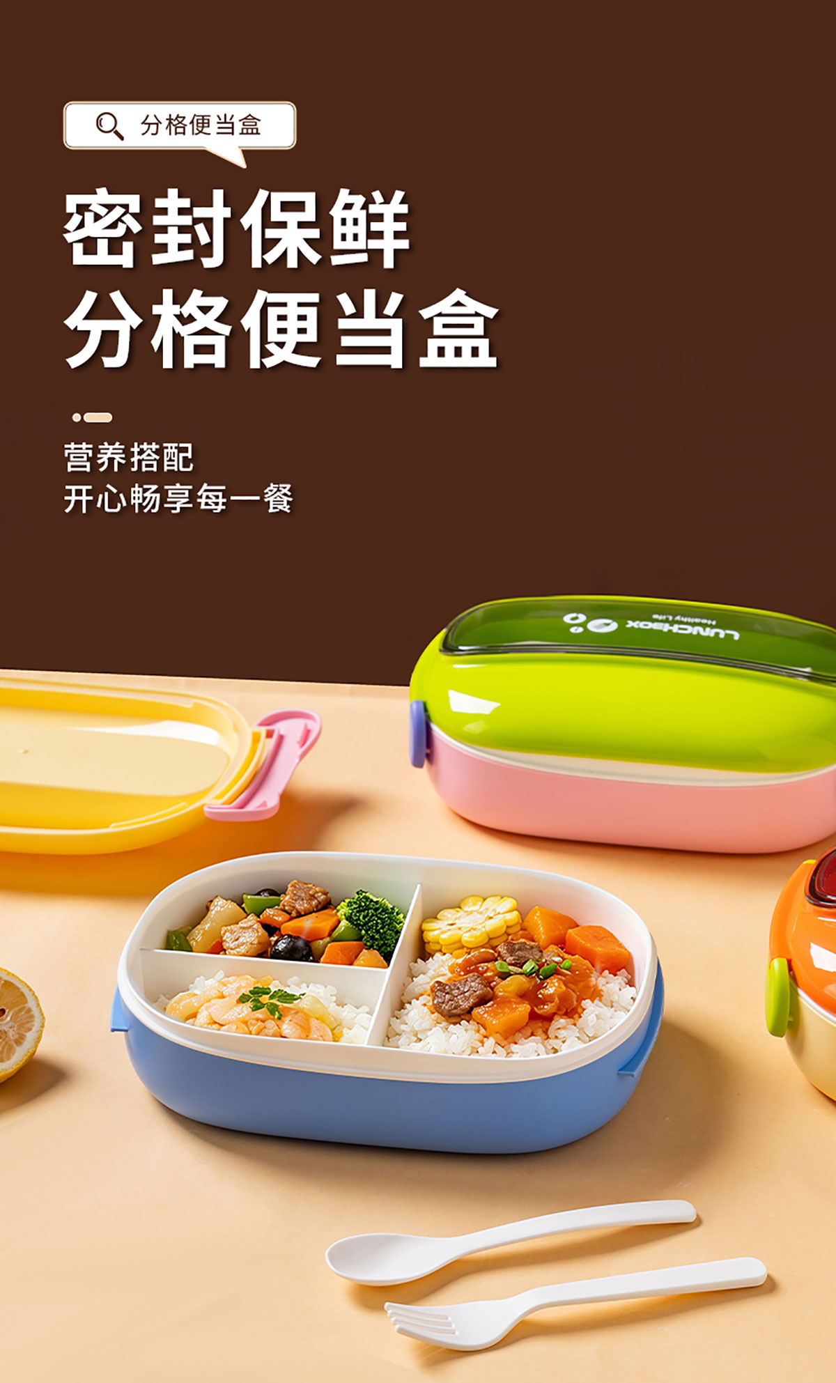馬卡龍分格塑料飯盒1300ml