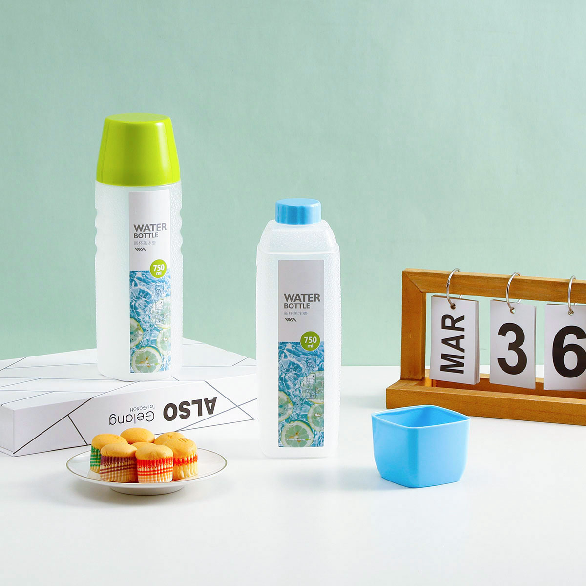 新圓形/方形杯蓋水壺750ml