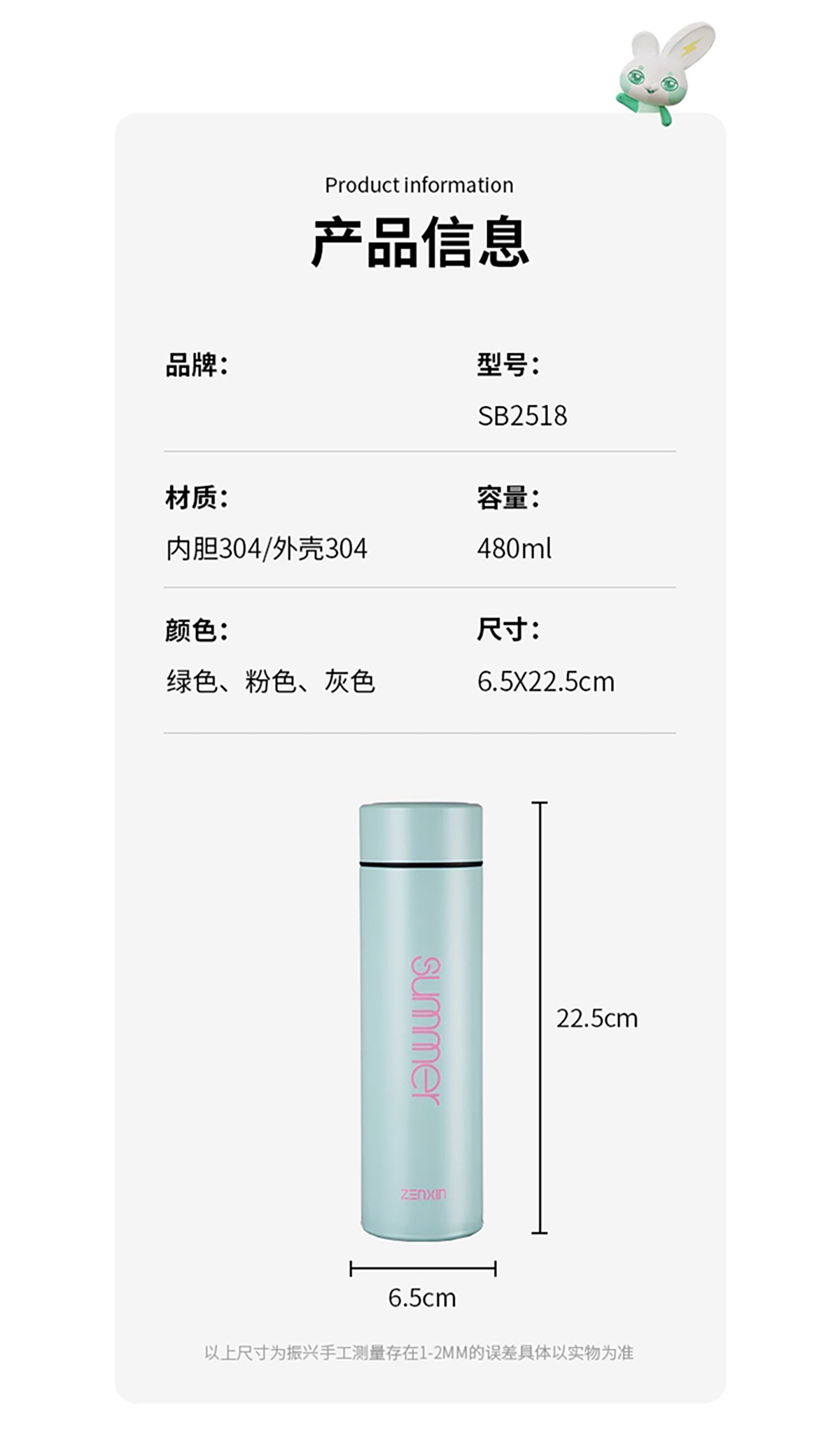 直身不銹鋼保溫杯(480ml)